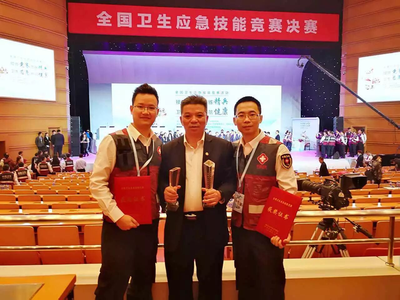 经过4天的激烈角逐,广东省代表队发挥出色,在比赛过程中展现了过硬的心理和专业素质,取得佳绩。获得了团体二等奖(团体总分第5名)的好成绩!其中,突发中毒事件处置桌面推演项目全国第二,突发中毒事件处置组复赛总成绩进入全国前三。我院张程荣获个人一等奖,授予全国卫生应急技能标兵称号,唐侍豪荣获个人二等奖,授予全国卫生应急技术标兵称号。